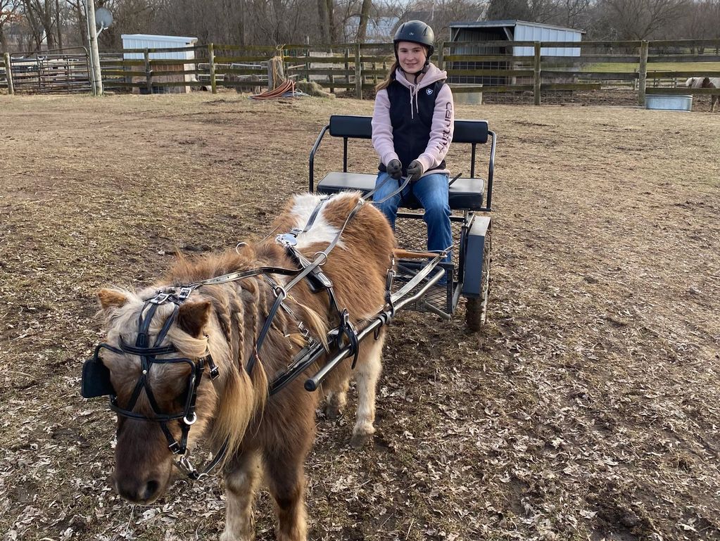 last year, I was fortunate to lease Jasper, a mini who helped me learn to drive a horse. Through our many lessons together, we became a team and competed in 4-H shows. Jasper introduced me to new opportunities, including driving bigger horses at the fair. I’m grateful for the experience and skills I gained, and for having Jasper by my side as I developed a love for driving.
