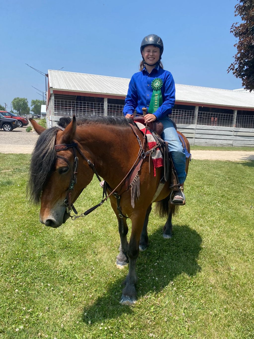 Mackenzie Dream (Gracie) is my first horse, a special Christmas gift who has been with me through countless adventures. She is a loving pony, with a calm and sometimes "goofy" personality, but she knows how to do it all. From trail riding, English riding, driving, and even jumping, Gracie has been my partner in every event. During the day Gracie can be spotted in her field or giving a lesson! On