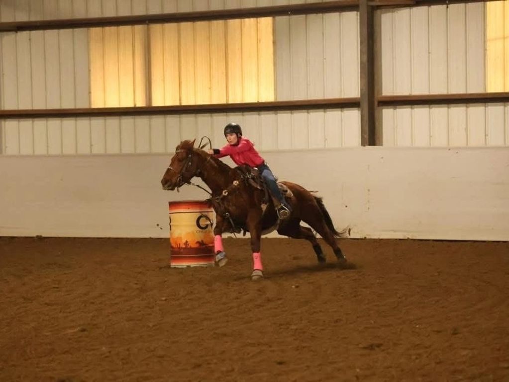 Daisy Mae (Daisy) , and I began training together after discovering her hard work ethic and good attitude.That unexpected turn allowed us to transition from trail riding to competing in barrel racing, poles, and cow events. After a years of hard work, Daisy has become a vital part of my rodeo journey, and I now use her for ranch events and riding lessons, where she truly shines. Daisy is currentl